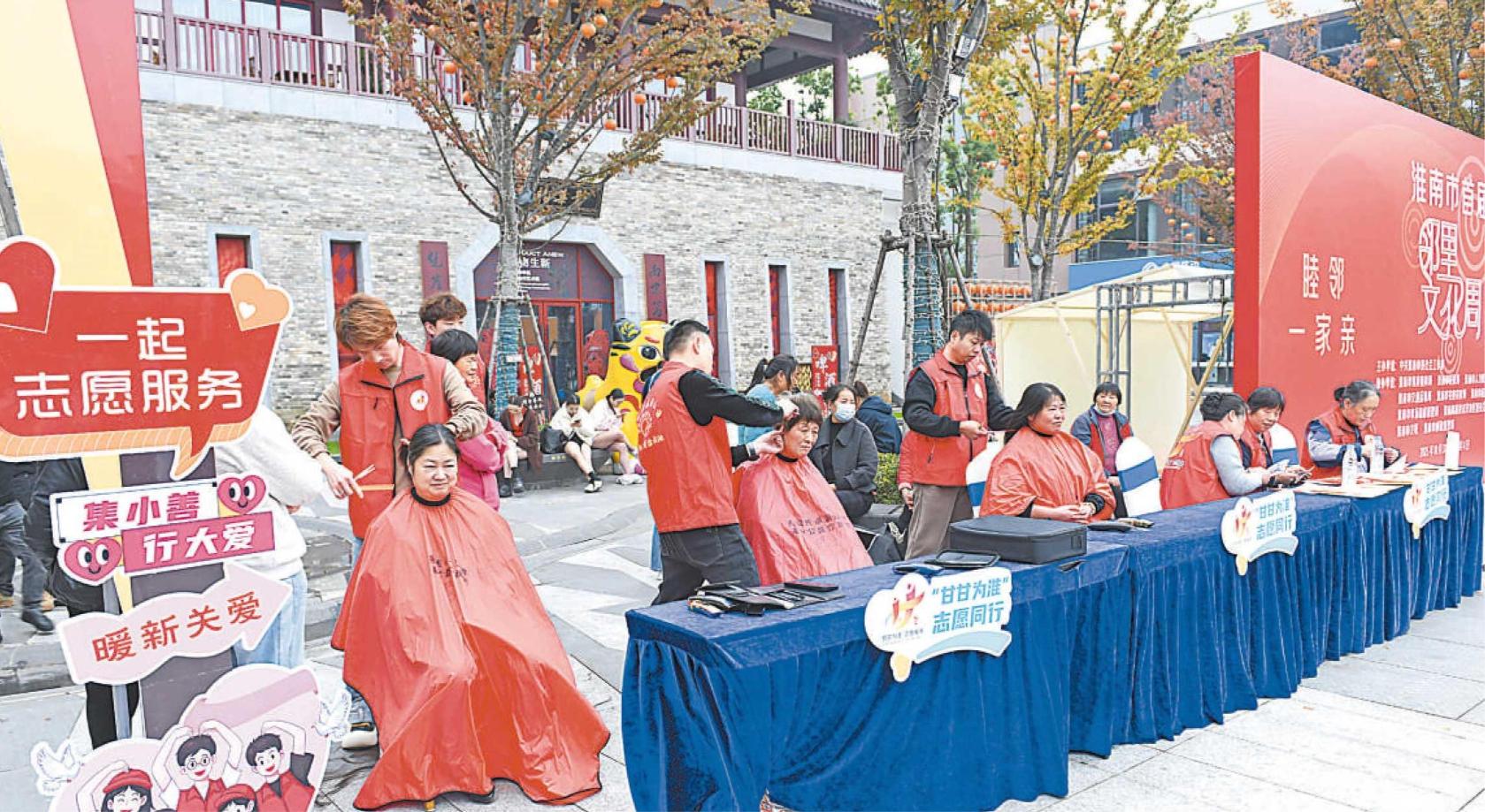 淮南市首届“邻里文化周”活动日前举行,图为志愿者为社区群众义务理发。 陈彬 摄