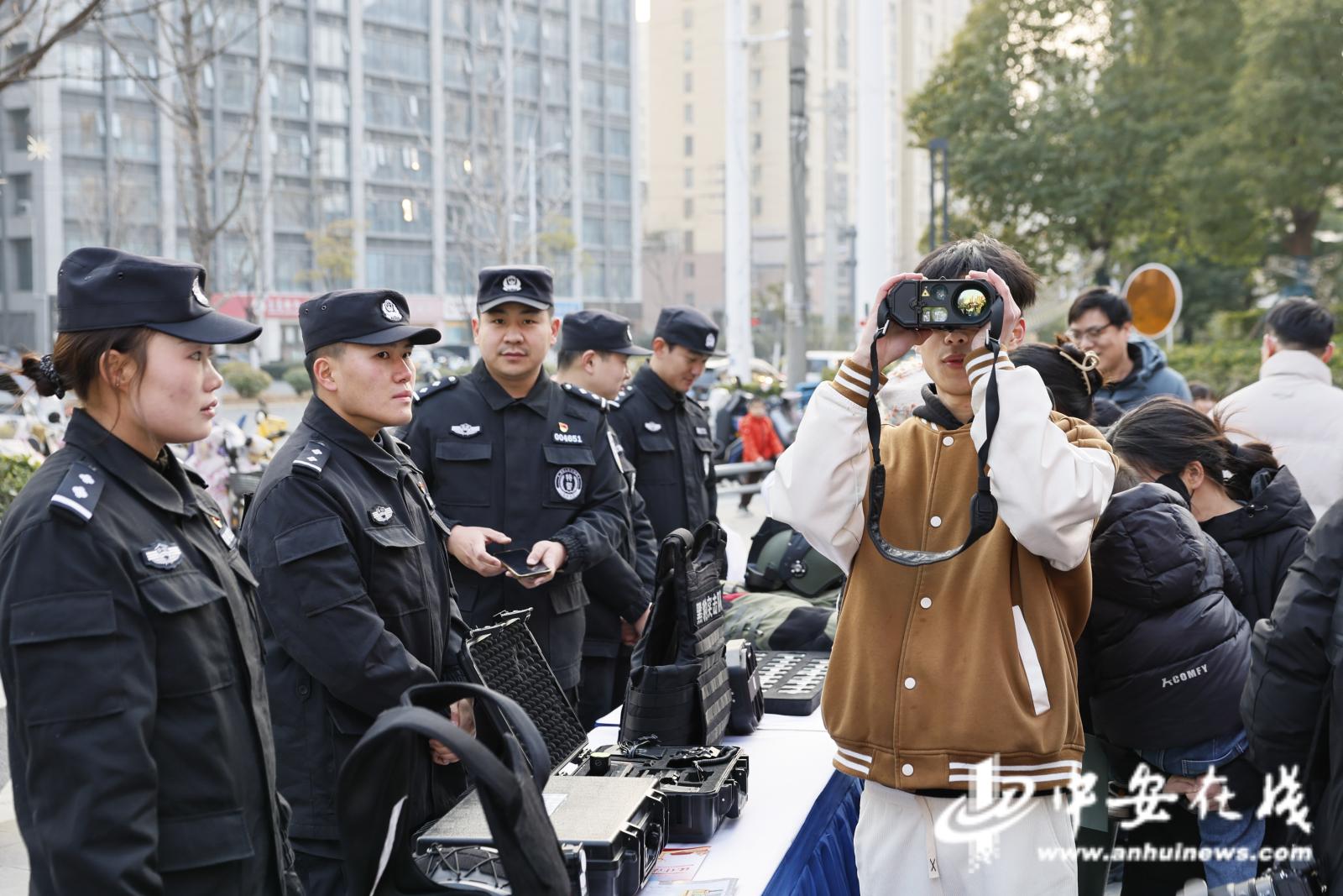 1月6日,在安徽省合肥市庐阳区,市民正在近距离参观各类警械装备,沉浸式体验警营工作日常。当日,合肥市公安局庐阳分局在户外广场组织开展“警民相约,幸福相伴”为主题的警营开放日活动,现场通过警械装备展示、反恐防暴模拟演练、安全知识普及、反诈宣传等内容,迎接第6个中国人民警察节的到来。(张蕴颉 记者 刘玉才)