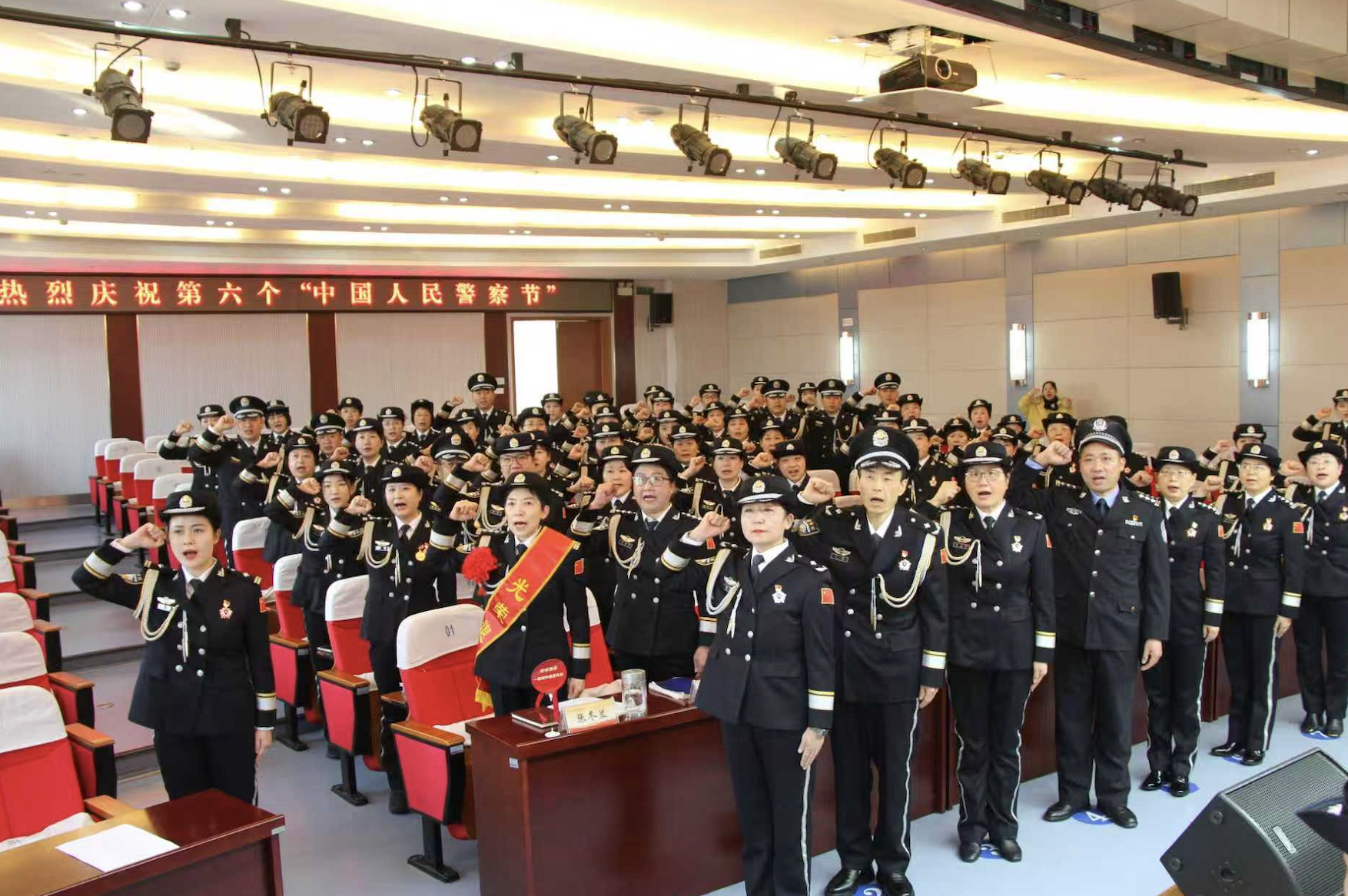 “伟大的祖国赋予我使命,复兴的民族给予我力量,忠诚的道路浴血荣光,英雄的足迹越走越长……”1月8日,安徽省女子强制隔离戒毒所警旗飘扬,警歌嘹亮,百余名戒毒人民警察警容严整、整齐列队,举行中国人民警察节庆祝仪式。