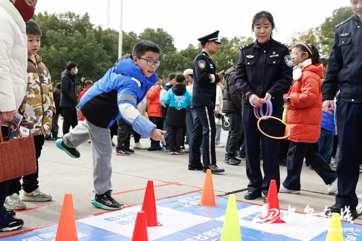欢声笑语中,活动进入了轻松有趣的小游戏互动阶段。此次活动现场精心设置了多个寓教于乐的宣传展台与游戏点位:在反诈宣传区,通过趣味套圈学习识骗防骗;在交通安全区,用投壶游戏了解安全常识;禁毒展台前,仿真模型让大家直观认识毒品的危害。活动中,小朋友们手持集章明信片,穿梭于各个点位完成任务,赢取精美礼品,在收获快乐与奖品的同时,也将安全防范知识深植于心。