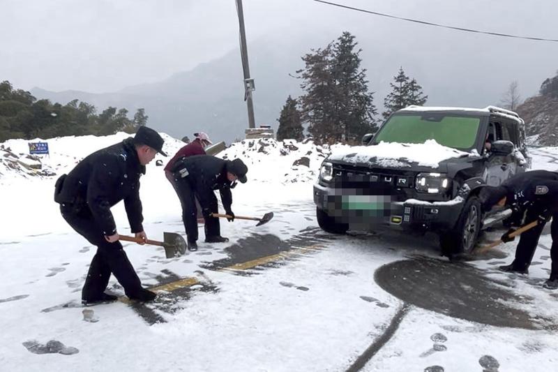 尽管如此,民警们仍坚持用有限工具清理冰雪。他们知道,在这样偏远的山区,每一分钟的延误都可能让受困者面临更多风险。