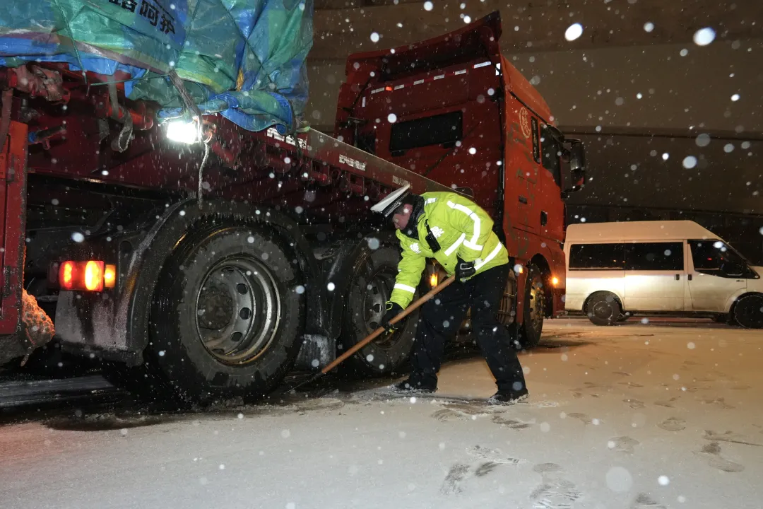 “这里是保障合肥市民餐桌供给的关键通道,每天都有大量货车往来。越是雨雪天气,越要格外关注。”王万乐呵着白气告诉记者,为了应对恶劣天气,大队民警辅警全天候在岗,梯次上岗,确保守护不断线。