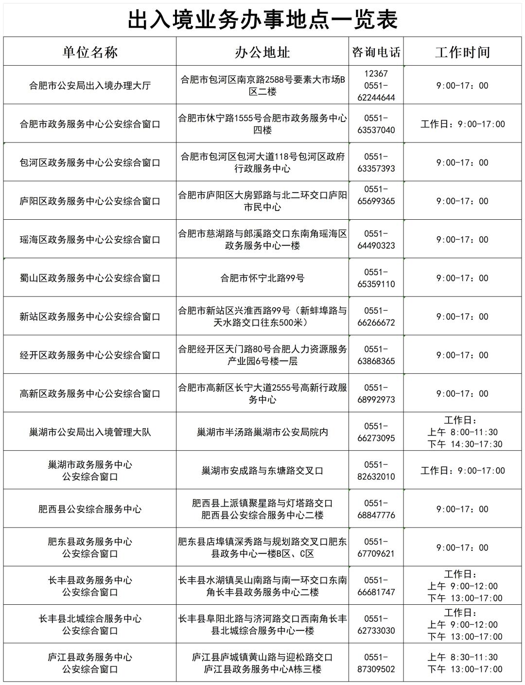 据合肥市公安局出入境管理支队民警介绍,目前全市各个区县(市)的政务服务中心公安综合窗口都能办,可以就近选择办理点。省内户籍居民办理时间为7个工作日,省外户籍居民办理时间为20日。