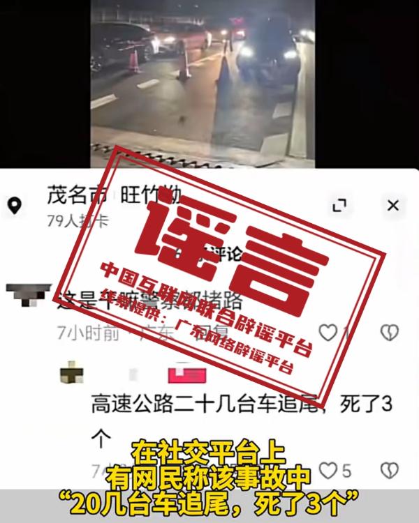 网传“广东茂名高速路多车连撞致三人死亡”系谣言