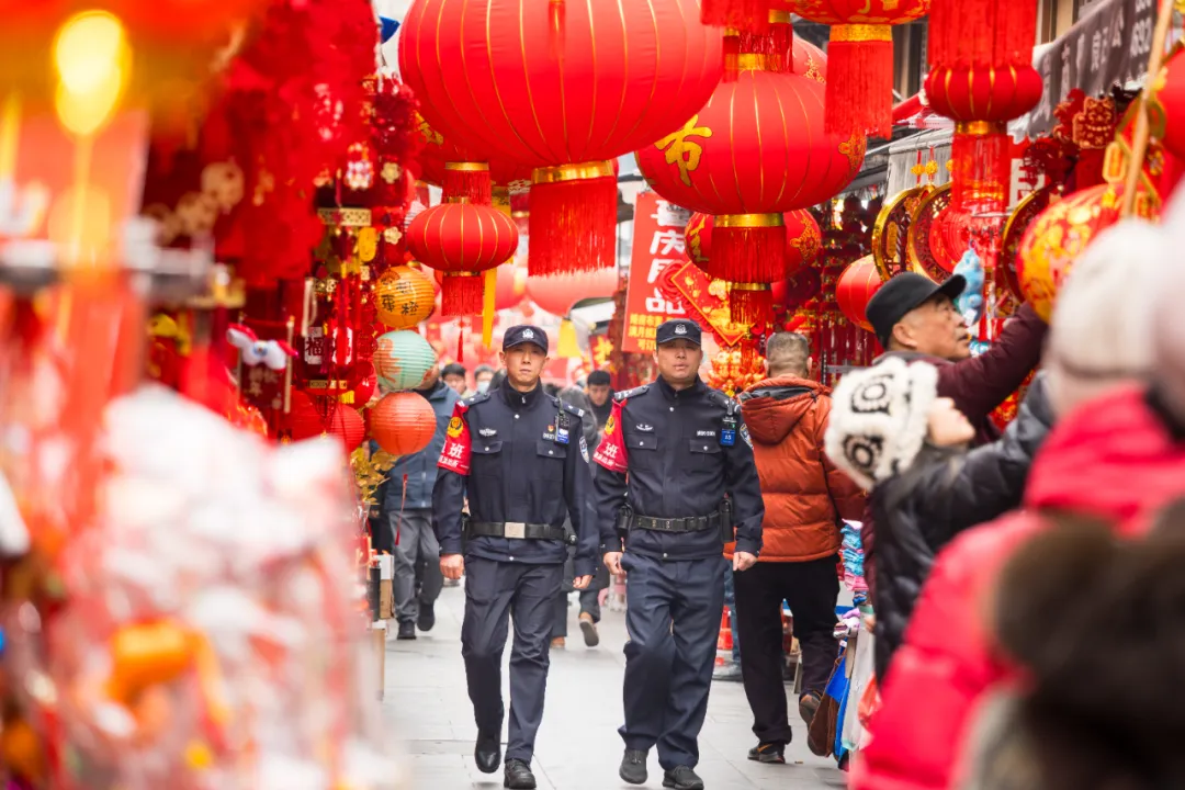 每年临近春节,安庆路派出所民警便提前进驻城隍庙,开展高频次步巡,并深入摊位发放反诈宣传单、讲解安全防范知识。