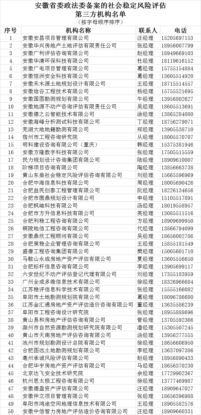 安徽省委政法委备案的社会稳定风险评估第三方机构公告