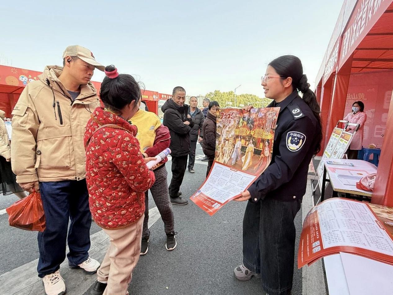 除定点“坐诊”答疑,普法展板长廊以案释法、图文并茂,流动普法志愿者穿梭人潮化身“移动宣传站”,万余份普法资料在欢声笑语中传递。这场跨越百年的民俗之约与新时代法治实践的碰撞,不仅让法治种子扎根基层土壤,更成为徽州区深化基层依法治理、优化法治化营商环境的生动注脚。