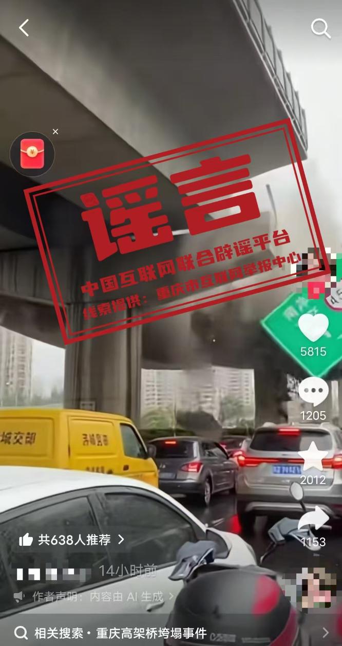 重庆“南岸立交”发生坍塌系AI生成