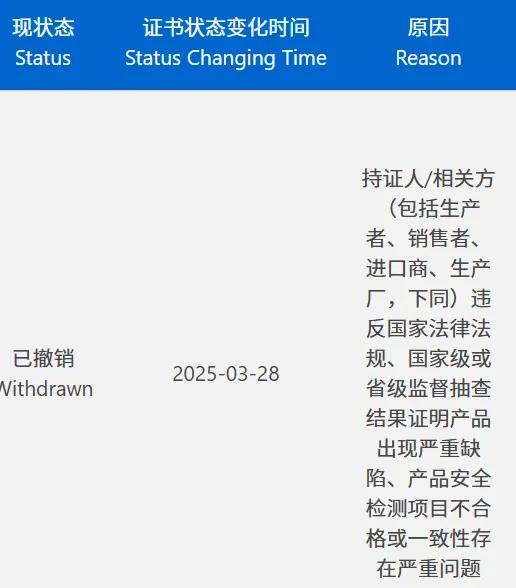 △相关3C认证撤销原因