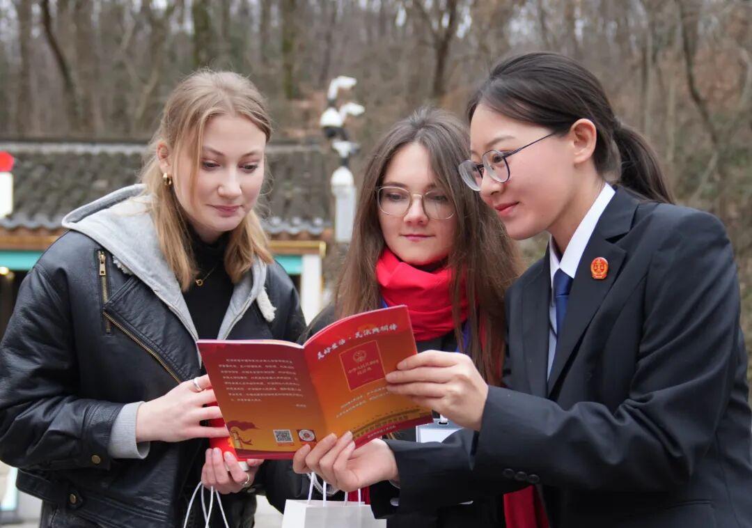 法院干警向留学生重点介绍了民法典在保障公民人身权利、财产权益、侵权责任等方面的内容,并用简洁易懂的语言回应留学生对涉外民事法律适用、在华生活权益保障等方面的提问,让他们直观感受中国法律与民生保障的深度融合。