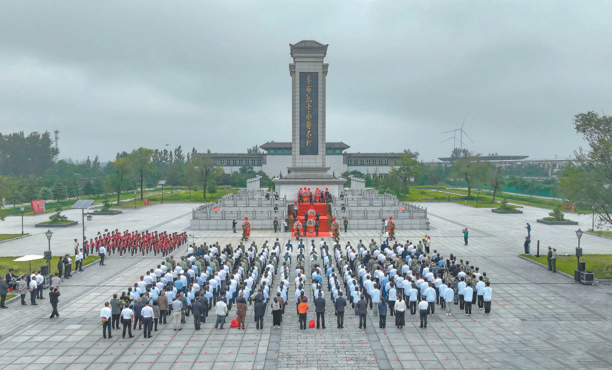 在亳州市谯城区皖北烈士陵园革命烈士纪念碑前,社会各界向革命英烈敬献花篮。程伟如 摄