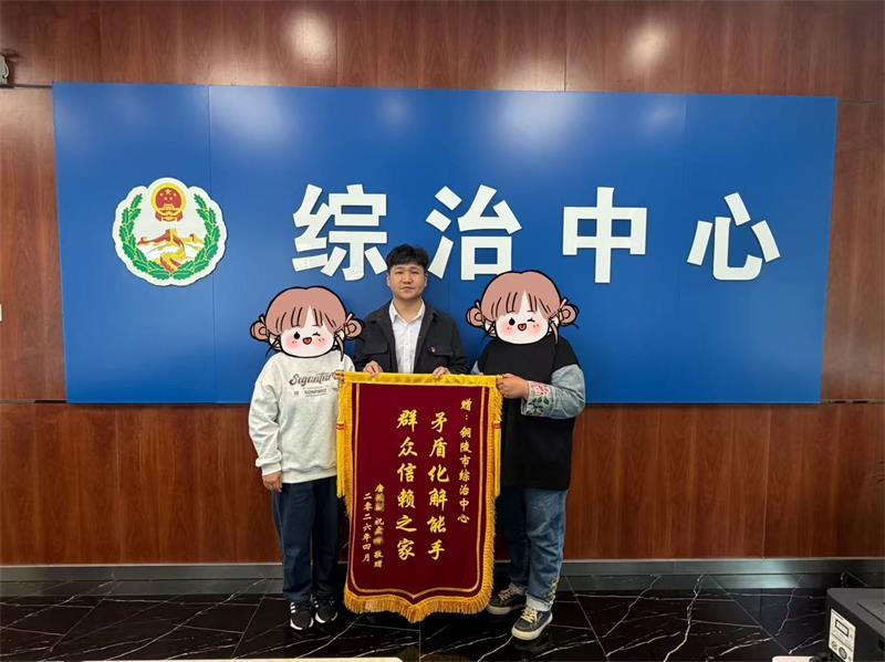 近日,铜陵市民唐女士和祝女士携手将一面写着“矛盾化解能手 群众信赖之家”的锦旗送至铜陵市综治中心,对综治中心工作人员成功化解商铺合作合同纠纷表示感谢。
